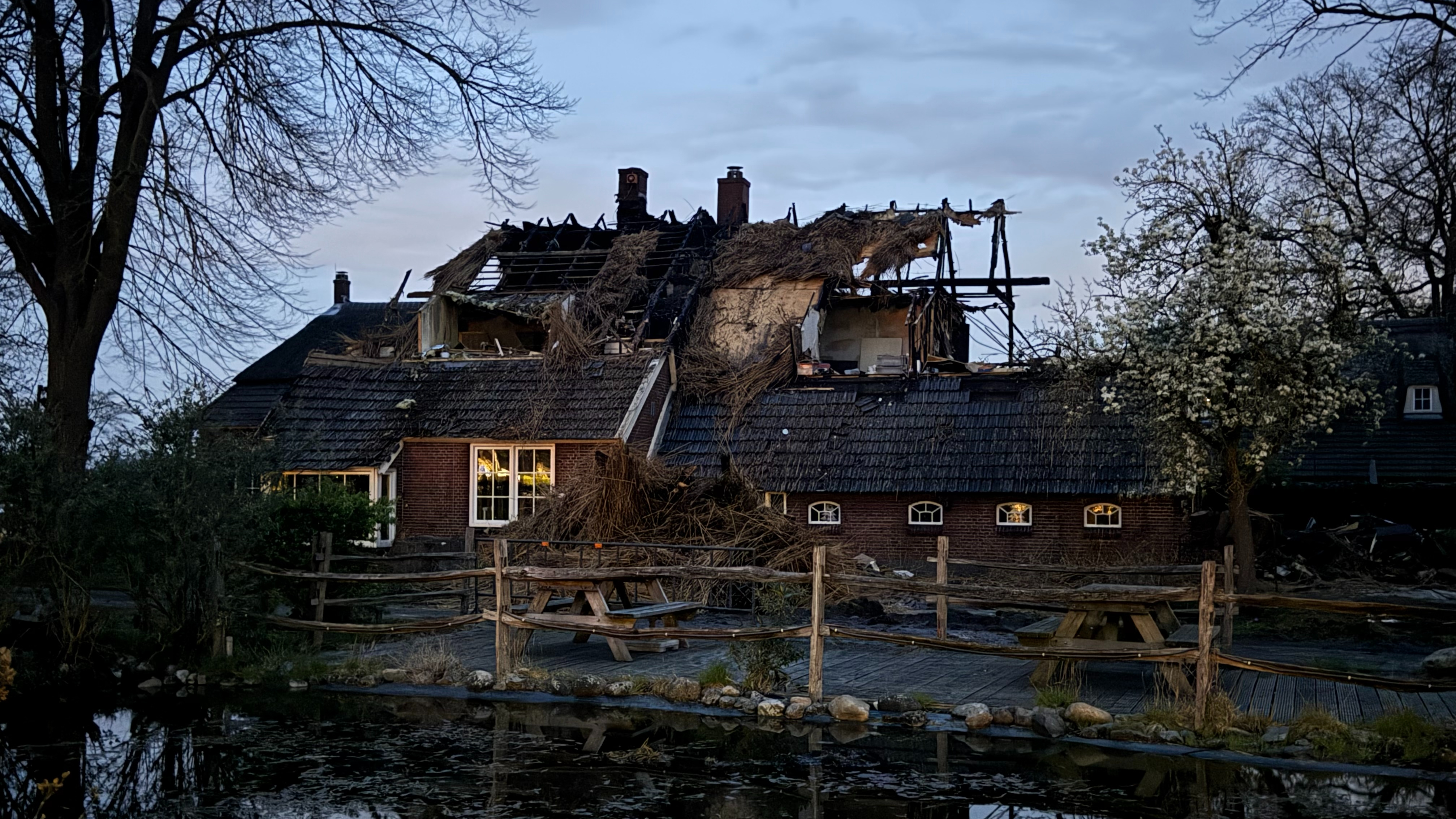 donderdag 9 april 2026, 18:04 uurDe grote brand bij horecazaak De Tasca in Markelo heeft het pand verwoest. Dat zegt woordvoerder Erik Meijerink van de brandweer Twente. De vlammen sloegen over naar het rieten dak dat deels op het restaurant aan de Holterweg ligt. Vanwege de brand zitten buurtbewoners tijdelijk zonder stroom.