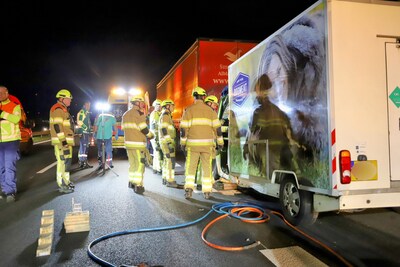 Bestelbus tegen vrachtwagen geknald op A15, slachtoffer raakt bekneld