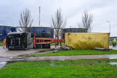maandag 6 januari 2025, 15:49 uurEen vrachtwagen met 25 ton augurken is maandagmiddag op de Orionweg in Moerdijk gekanteld. De vrachtwagen is waarschijnlijk eerst aan de rechterkant in de berm gekomen en kwam vervolgens bij het corrigeren aan de linkerkant van de weg terecht, daar kantelde de truck. De chauffeur raakte bij het ongeluk lichtgewond.