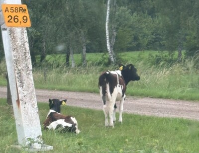 Dat is even schrikken: kalfjes lopen langs A58 bij Moergestel, weginspecteur grijpt in