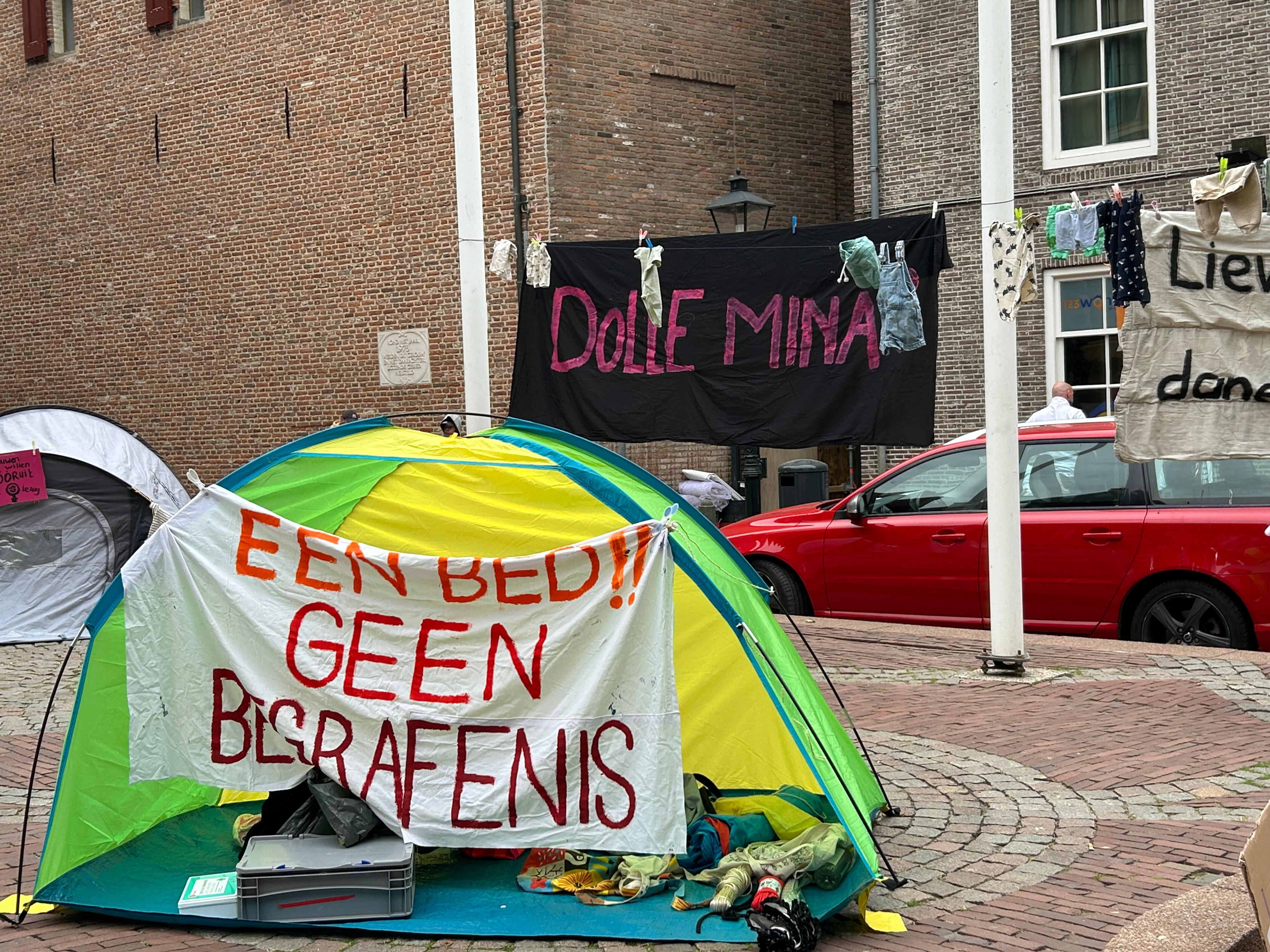 Dolle Mina's zetten tenten op uit protest tegen tekort aan vrouwenopvang