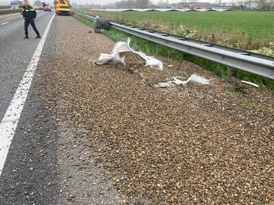 maandag 17 april 2023, 08:24 uurNIEUWENDIJK - Een rijstrook van de A27 bij Nieuwendijk richting Breda was maandagochtend een tijdlang dicht vanwege een lading grind op de weg. De lading kwam van een geschaarde aanhangwagen en moest worden opgeruimd door een zuigwagen.