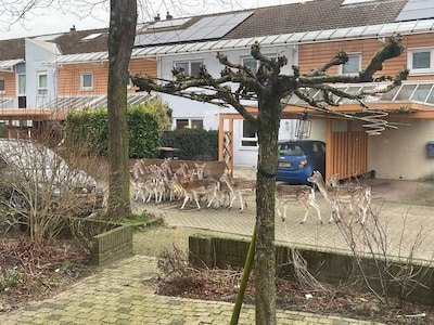 In de Amersfoortse wijk Nieuwland lopen twaalf herten door tuinen en straten. Sommige los van elkaar, maar sommige ook schuw alleen. De politie en dierenambulance zijn aanwezig voor een ‘reddingsactie’.