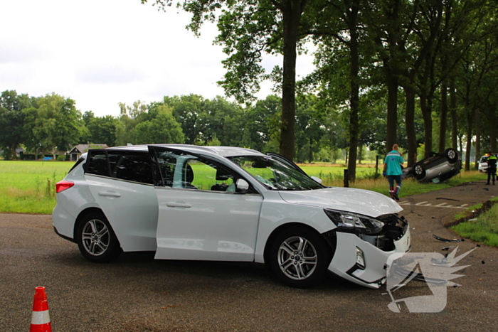 Auto belandt op de kop na harde botsing bij Nieuwleusen