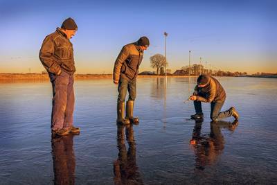 Eerste kortebaanwedstrijd op natuurijs in Friese Nijelamer: ‘Magisch gevoel om daar te staan’