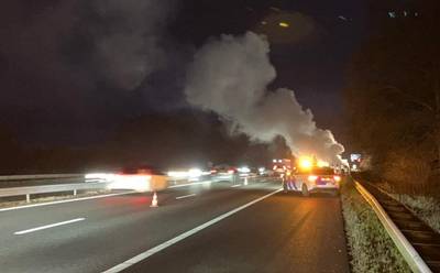 NIJKERK - Donderdagmorgen 8 februari om 07.25 uur was brand ontstaan aan de Rijksweg A28 R 35,7 in Nijkerk.