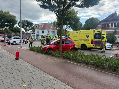 Twee auto’s botsten vrijdagmiddag op de kruising van de Heiweg met de Sint Jacobslaan in Nijmegen tegen elkaar. Eén auto kwam door de klap tegen een boom tot stilstand, meldt een 112-verslaggever ter plaatse.
