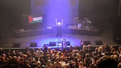 Publiek zingt ‘Death to IDF’, frontman doet niet mee • Volop Palestijnse vlaggen in de zaal