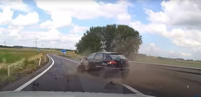 Beelden van dollemansrit op de A17 die eindigt in een crash