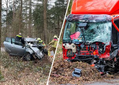 Drie gewonden bij frontale botsing tussen auto en vrachtwagen in Nunspeet