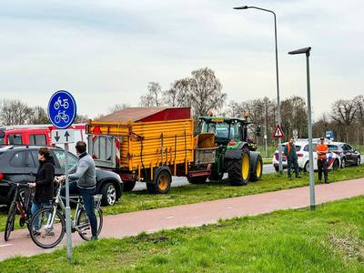 Fietser aangereden door trekker bij rotonde in Nunspeet: slachtoffer naar ziekenhuis