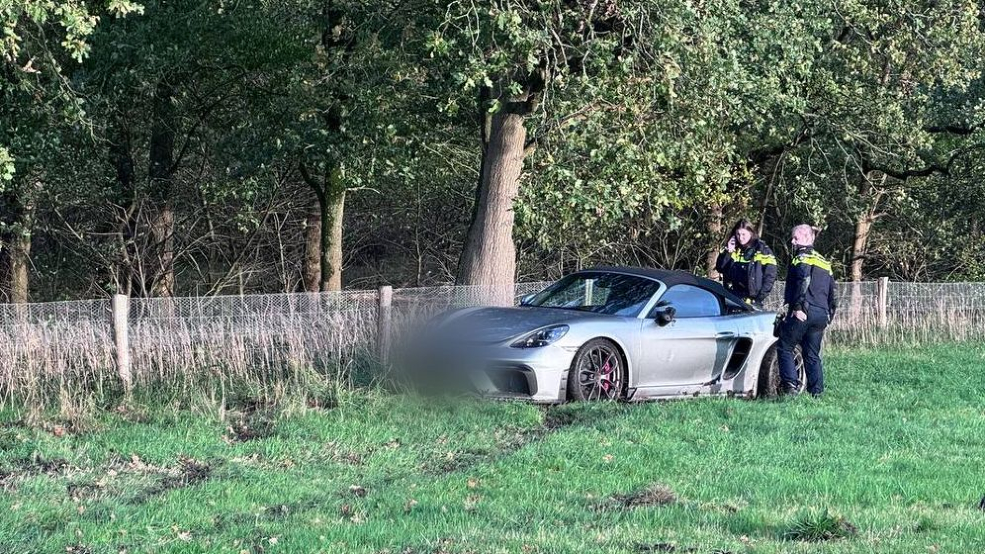 Peperdure Porsche crasht in weiland in Nunspeet, bestuurder spoorloos