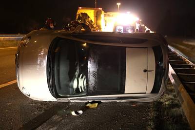 zaterdag 12 februari 2022, 10:01 uurDe hulpdiensten werden vrijdagnacht rond 3.50 uur gealarmeerd voor een verkeersongeval op de snelweg A58 bij Oirschot. Door nog onbekende oorzaak raakte de automobiliste van de weg en belandde z’n 200 meter verderop maar haar auto op z’n kant.