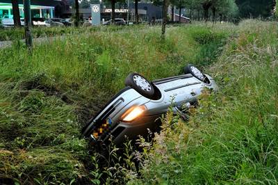 Auto op de kop in sloot
