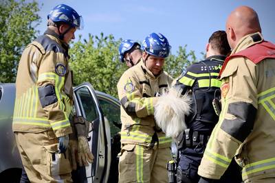 Brandweer bevrijdt op A1 automobiliste die bijna door hond werd gewurgd
