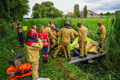 Auto vliegt meters door de sloot, persoon moet uit de auto geknipt