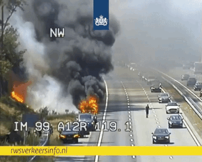 Enorme vertraging en honderden meters berm in vlammen op door autobrand op de A12
