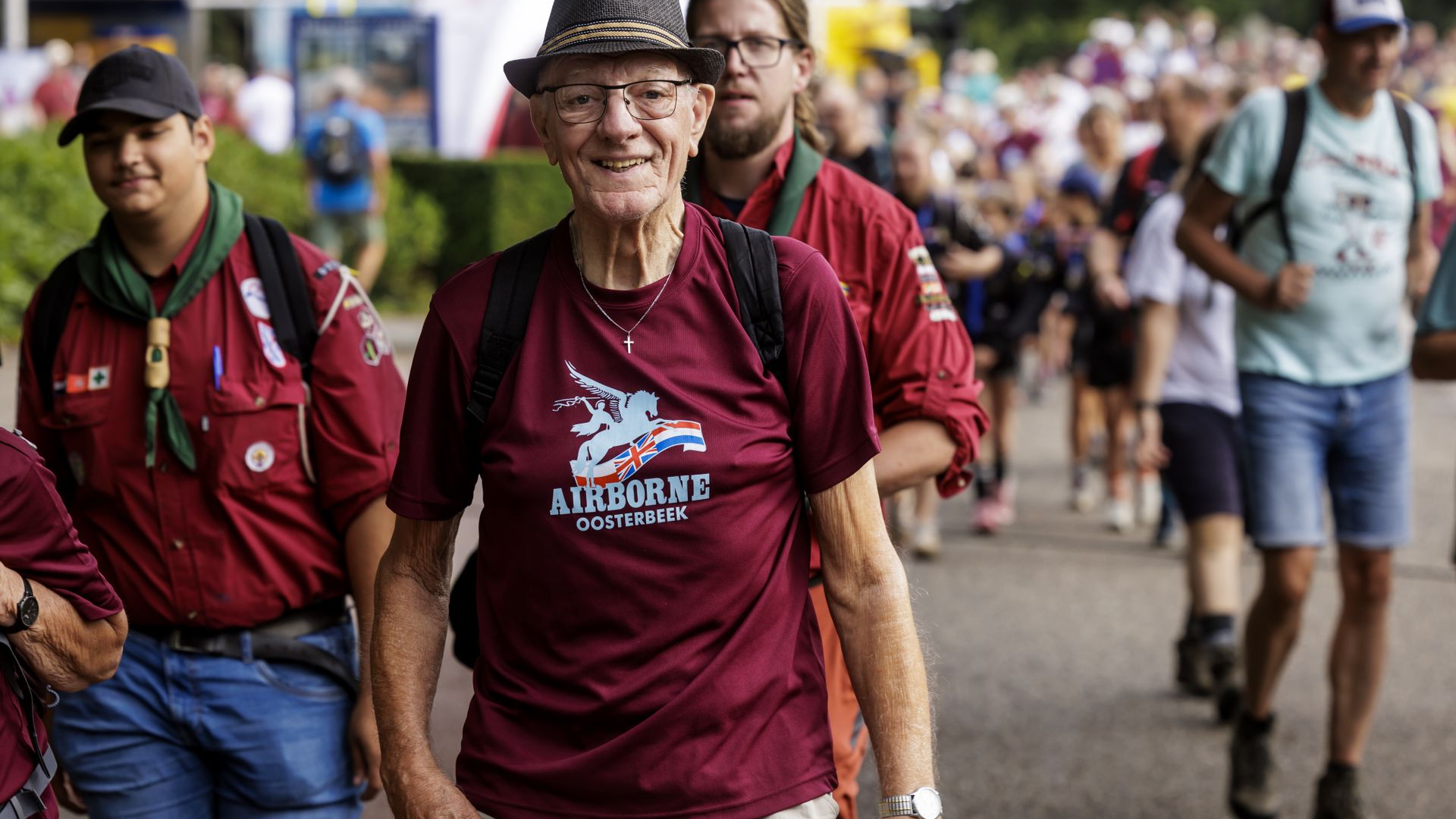 De eerste kilometers zitten erop voor wandelaars die vanuit het hele land naar Oosterbeek zijn afgereisd voor de Airborne Wandeltocht. In alle vroegte verschenen de langeafstandslopers zaterdagochtend aan de start. De overige deelnemers begonnen in de loop van de ochtend aan hun wandeling, onder toeziend oog van acht veteranen.