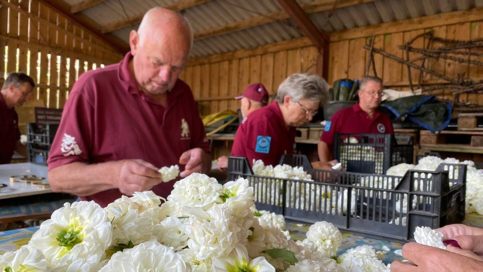 De laatste voorbereidingen worden getroffen voor de 77ste editie van de Airborne Wandeltocht. Bewegwijzering wordt over de hele route uitgezet en de dranghekken komen op hun plek. In een werkplaats in Oosterbeek staat een tiental vrijwilligers nog zesduizend dahlia's te plakken, een van de klusjes die tot het laatst bewaard worden.