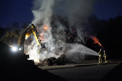 vrijdag 22 augustus 2025, 06:42 uurOOSTERHOUT - Een enorme berg maaisel is donderdagnacht in de brand gevlogen. Dit gebeurde bij recycling centrum Den Ouden langs de Statendamweg in Oosterhout. Het is nog onduidelijk of het verkeer van de A59 last zal hebben van de enorme rook.
