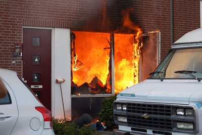 zondag 7 september 2025, 08:50 uurIn een huis aan de Brederostraat in Oosterhout is zondagochtend brand uitgebroken. De gehele benedenverdieping stond in brand. Vlammen sloegen uit het raam.