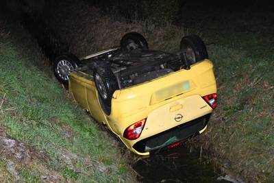 vrijdag 16 december 2022, 07:39 uurEen auto is gisteravond op zijn kop in een sloot terecht gekomen bij de Wijkhuisweg in Oostkapelle. In de auto zaten een vrouw en twee kinderen. Zij raakten niet gewond.