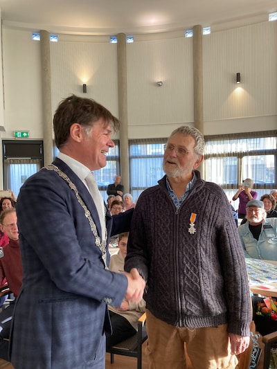 zaterdag 11 januari 2025, 10:02 uurBREDA - In wijkcentrum Heksenwiel in Breda heeft Berry Vollering (80) vrijdag een Koninklijke Onderscheiding ontvangen uit handen van burgemeester Paul Depla. Hij werd benoemd tot lid in de Orde van Oranje-Nassau.