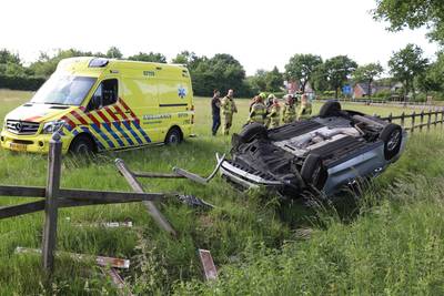 Auto belandt op zijn kop in greppel