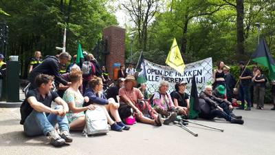 'Hekken weg, alle dieren vrij’: activisten blokkeren ingang van Hoge Veluwe met zitactie