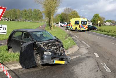 Twee auto’s botsen hard: bestuurder gewond, voorkant auto ligt in puin