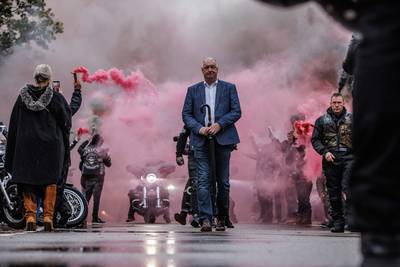 ROOSENDAAL/OUDENBOSCH - Zo’n driehonderd leden van motorclubs uit Nederland en België hebben woensdagmorgen een massaal eerbetoon gehouden met fakkels, vuurwerk en ronkende motoren bij de uitvaart van motorclublid Alex van Gool (41), de man die vorige week werd doodgestoken in Sint Willebrord.