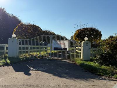 Bij een grote villa aan de Parksesteeg in Overasselt heeft de politie een groot doek aan de poort opgehangen met de tekst ‘drugspand gesloten’.