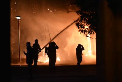 Grote brand bij voormalig azc in Overloon, bewoners moeten binnen blijven
