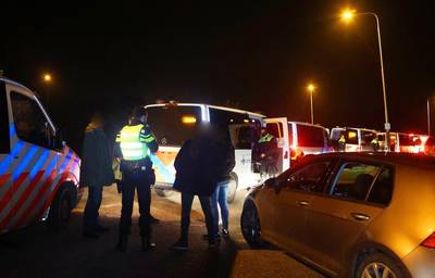 POEDEROIJEN - Een peloton ME’ers stond zaterdagochtend net buiten Poederoijen in alle vroegte klaar om een einde te maken aan een fikse brand op de kruising Burgemeester Posweg en Maarten van Rossumweg. Directe aanleiding was het vernielen van twee politiewagens met zwaar vuurwerk en het belemmeren van de brandweer bij bluswerkzaamheden. Maar op het laatste moment werd toch afgezien van hun inzet.