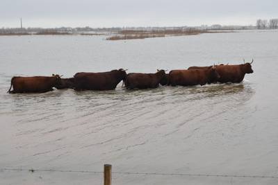 Grote reddingsactie in Poederoijen, gebied konikpaarden en Rode Geuzen onder water