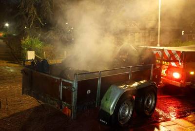 POEDEROIJEN - Op de kruising van de Burgemeester Posweg en de Dorpsstraat in Poederoijen heeft dinsdagavond een aanhanger met banden in brand gestaan. Opmerkelijk is dat dit volgens de gemeente de derde aanhanger in een week tijd is die in vlammen opging in Poederoijen.