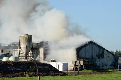 Kalfjes komen om bij grote brand in Prinsenbeek, melkveehouder is geëmotioneerd