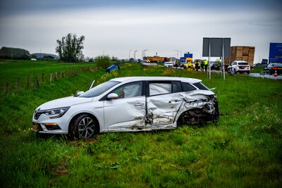 Bestelbus belandt op verkeerde weghelft van N322 en botst op auto