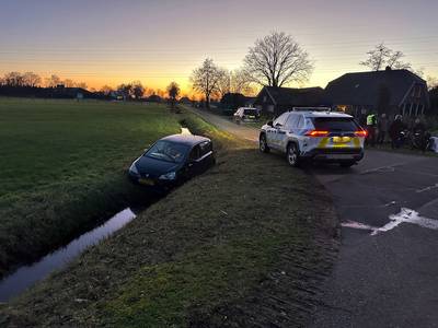 Auto belandt in sloot na botsing met bestelauto in Putten
