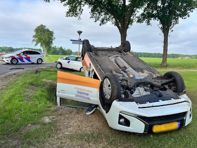 Auto belandt op de kop in Radewijk: twee gewonden