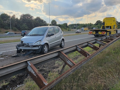 dinsdag 22 juli 2025, 21:45 uurRENKUM – De afrit van de A50 ter hoogte van de afslag Renkum is afgesloten geweest na een aanrijding waarbij een Mercedes in de vangrail belandde. Het incident vond plaats op de afrit, waarbij brokstukken verspreid raakten over zowel de rijbaan als het naastgelegen fietspad. De auto en de vangrail raakten zwaar beschadigd.