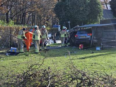 Automobilist botst op voorligger en crasht in schuurtje in Rhenen