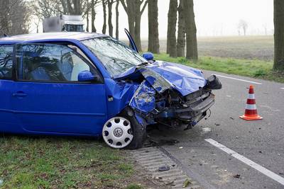 Auto in de kreukels na botsing tegen boom