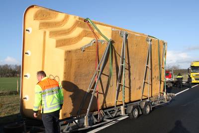 RIJSSEN - Een gekantelde vrachtwagencombinatie bij Rijssen zorgt voor een enorme file op de A1 van Hengelo naar Apeldoorn. De chauffeur vervoerde een zwembad.