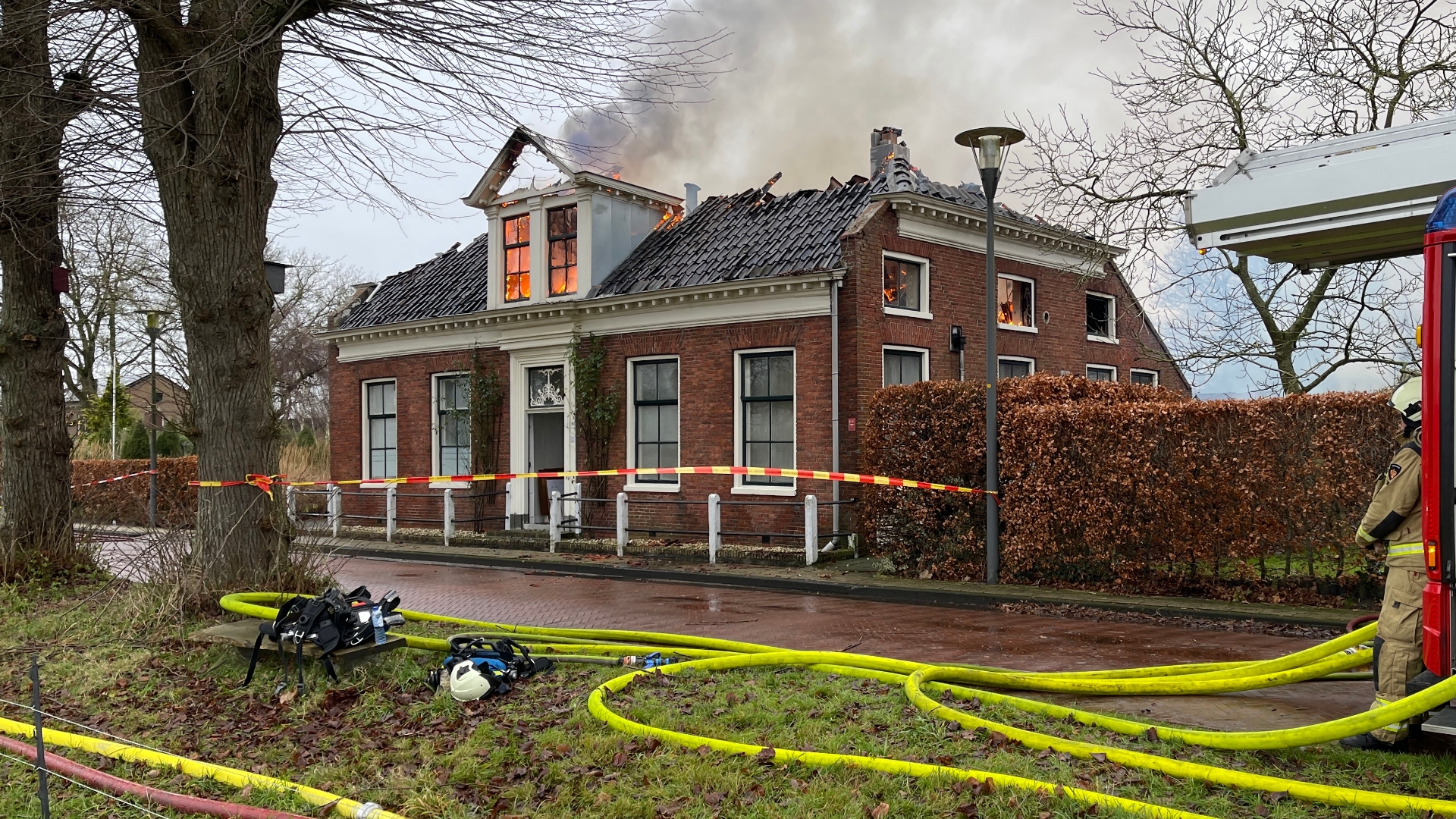 Vuurzee verwoest woonboerderij Roderwolde, brandweer heeft vlammen onder controle