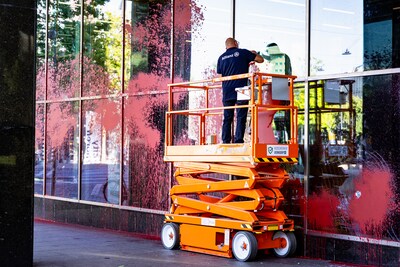 Hoofdkantoor verzekeraar beklad en ruiten ingeslagen door activisten