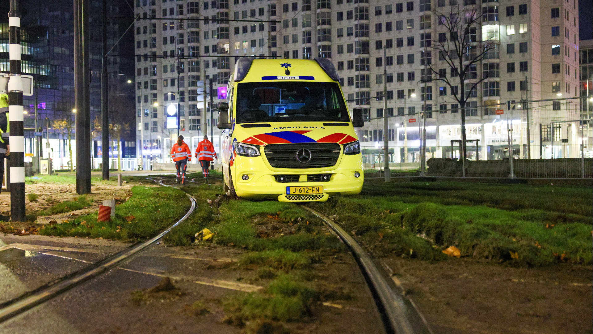 vrijdag 5 december 2025, 06:25 uurOp het Hofplein in het centrum van Rotterdam is een ambulance in nacht van donderdag op vrijdag in de modder beland. Een takelwagen moest eraan te pas komen om het voertuig er weer uit te halen.