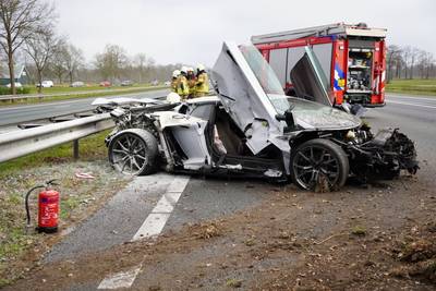 A28 bij Rouveen afgesloten na eenzijdig ongeval peperdure sportauto
