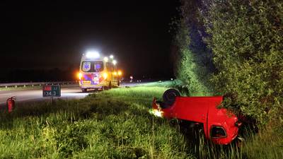 Auto belandt op dak in berm van A50, helikopter landt op snelweg voor zwaargewonde bestuurder