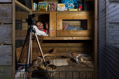 SCHAIJK/GEMERT - Een hele dag vertoeven in een dierenverblijf, inclusief overnachting in een konijnenhok van circa 150 bij 60 centimeter. De 44-jarige Evelien van der Niet uit Gemert deed het afgelopen weekeinde met plezier. En ‘de hele wereld’ mocht meekijken via een livestream.